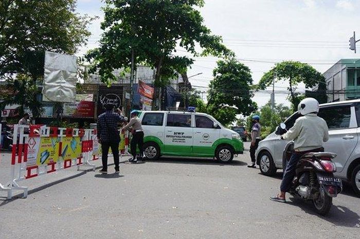 Anggota Polres Tabanan melakukan penyetopan pada sebuah ambulans dan mengarahkannya untuk putar balik pada Jumat (22/5/2020) malam.
