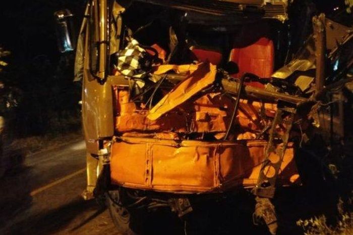 Setelah itu, truk tersebut menabrak truk Colt Diesel bermuatan air mineral yang dikemudikan Samsuri.